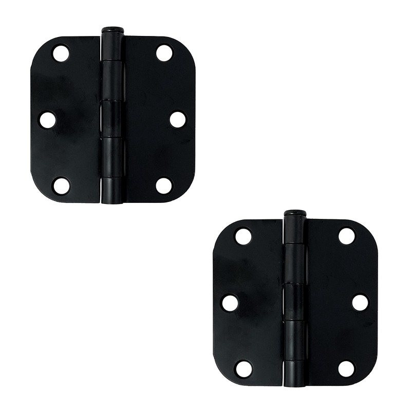 - Specifications - Size 3’’ X 3’’ door hinges are designed for 1-3/8’’ thick residential doors. Packaged included 12 mounting screws. Corners: 3/8’’ radius. Finish: Black High-Grade quality metal