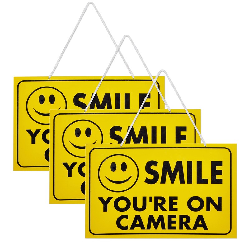 3 x CCTV Sign Yellow Smile You're on Camera High Contrast Recording Warning Safety Door Notice