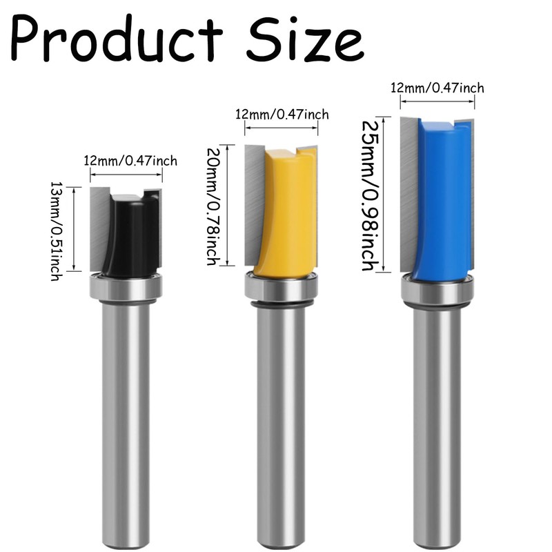 - Set contains: 3 x 8 mm shaft straight router bits. Cutting diameter: 12 mm. Shank diameter: 8 mm. Cutting length: 13 mm/20 mm/25 mm, widely used for portable hand routers and table routers to meet most needs