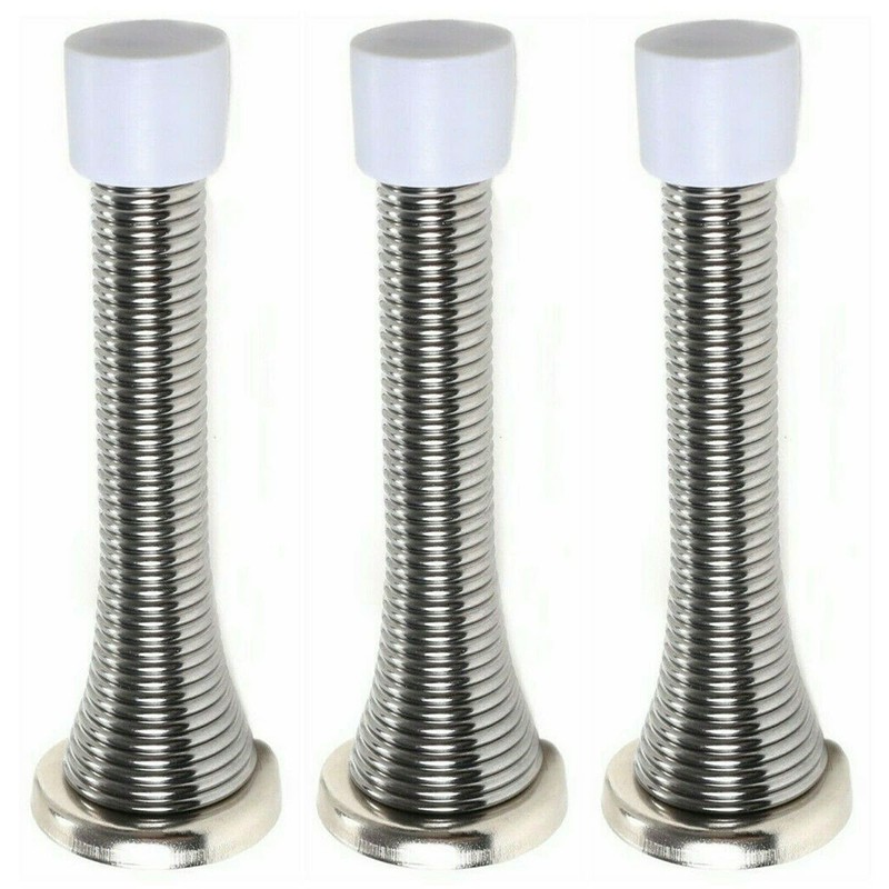 3 x fiXte Wall Mounted Chrome Spring Door Stop Sprung Stopper Skirting Board Buffer