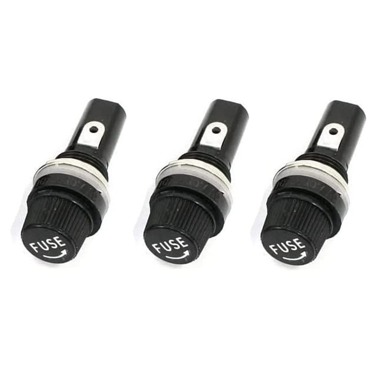 3 x Fuse Holder for Glass and Ceramic Fuses, 5 x 20 mm, Fuse Holder, black