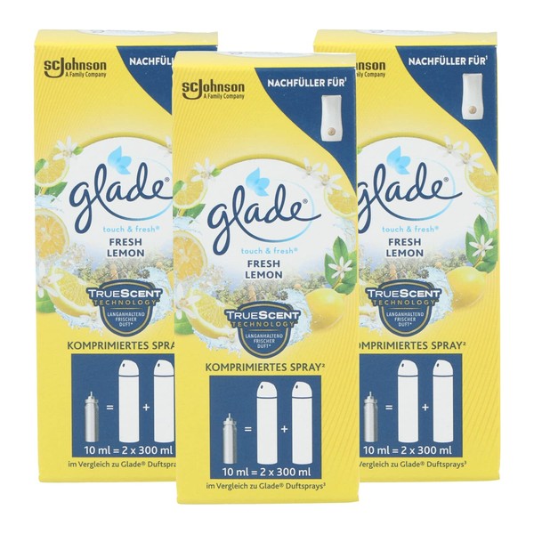 3 x Glade Touch & Fresh Air Freshener Refills Fresh Lemon Each 10 ml Fruity