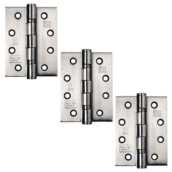 3 x Grade 11 Fire Rated Ball Bearing Door Hinges CE Rated Satin Chrome Plated