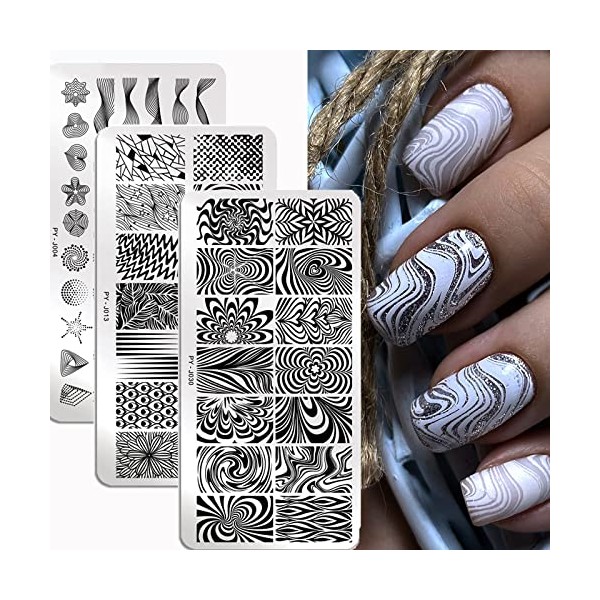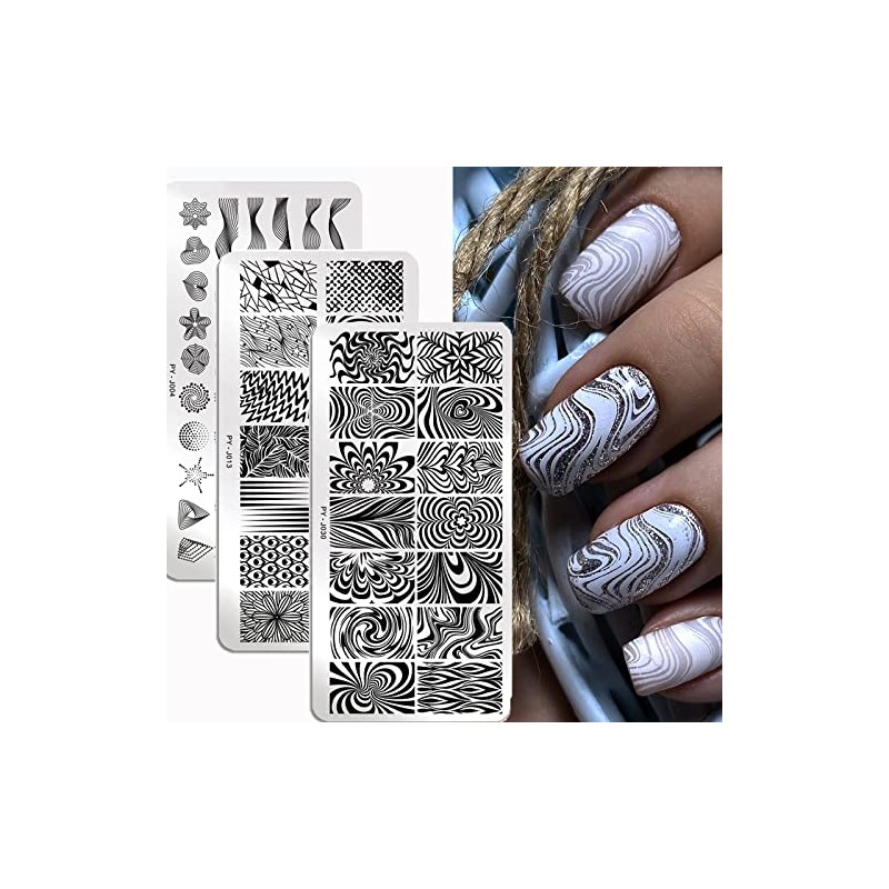 3 x Nail Stamping Plates, MWoot Nail Stamping Plate, Geometry Lines Image Template, Manicure Print for Starter