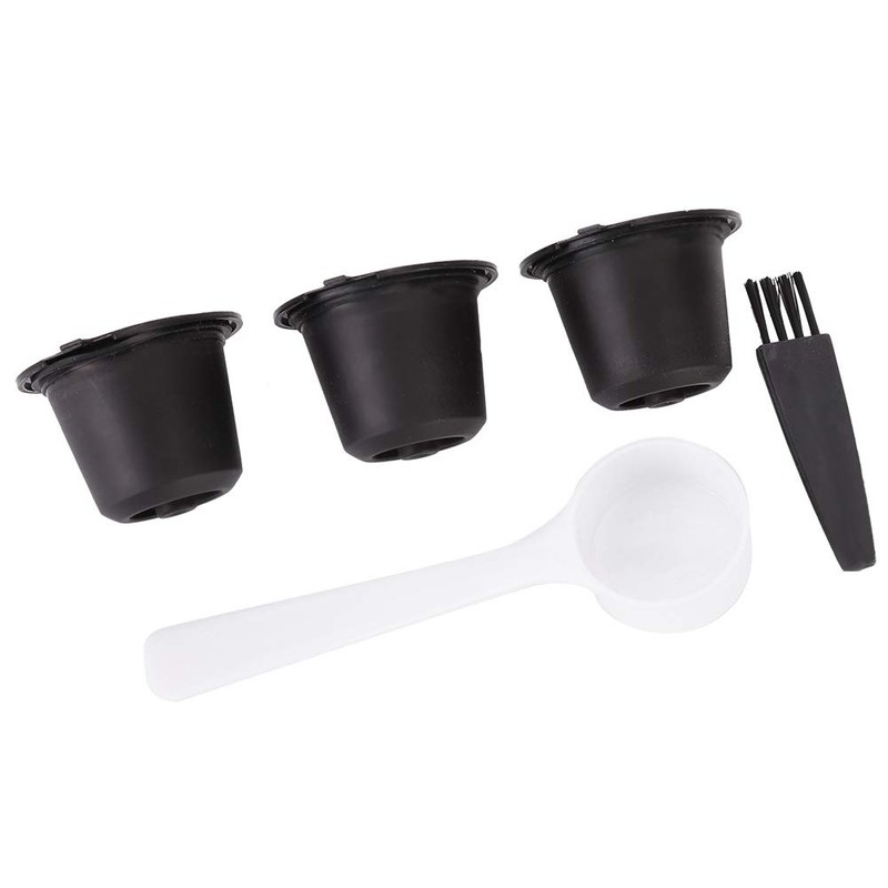 3 x Replacement Capsule Refillable Coffee Filter Reusable Coffee Capsules Filter Capsula Reusable for Nespresso with Coffee Spoon and Brush (Black)