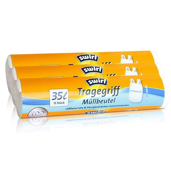3 x Swirl Carry Handle Bin Liners 35 L (Pack of 15/Roll)