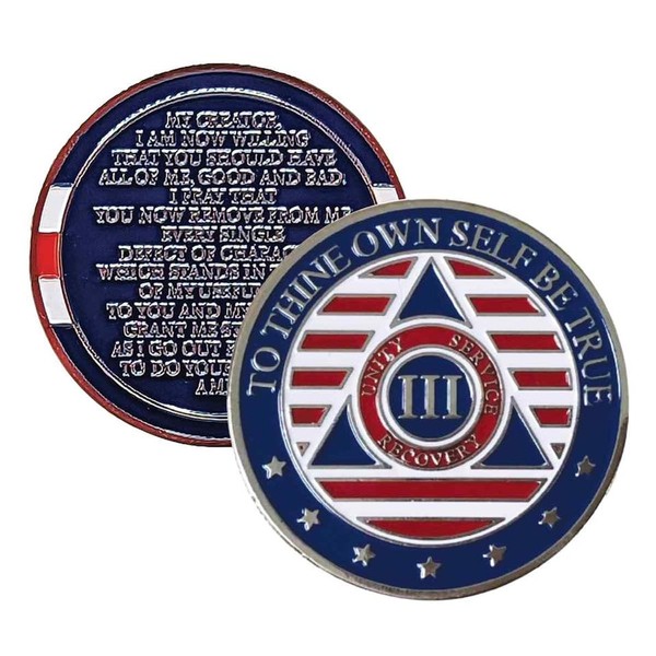 Not many AA chips and medallions look like this one. 7 Stars on the front and 7th Step Prayer on the back. Each of our 7 and 7 Yearly Medallions comes encased in its own sobriety coin capsule. This makes for a great presentation and sobriety gift for any milestone. A truly patriotic AA chip.
