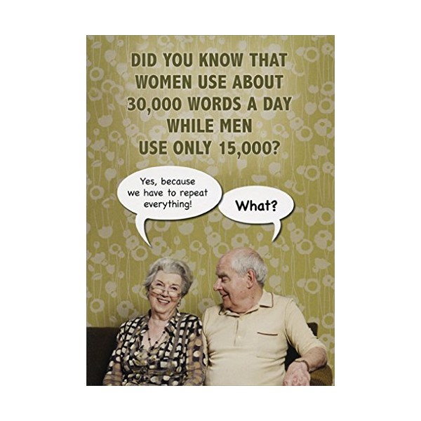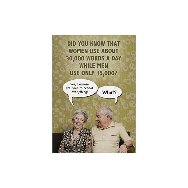 - Front Message: Did you know that women use about 30,000 words a day while men use only 15,000? Yes, because we have to repeat everything! What?