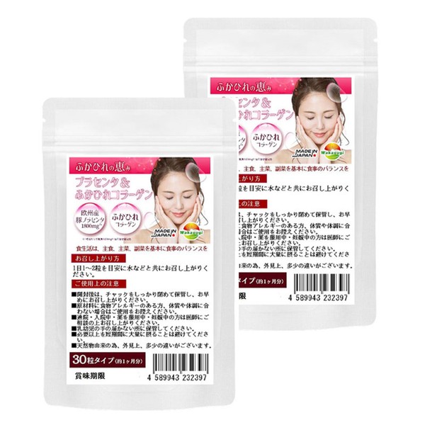 プラセンタ&ふかひれコラーゲン 30粒 2袋セット計60粒 ふかひれの恵み誕生 豚プラセンタ×低分子コラーゲン W配合 低分子コラーゲン ヒアルロン酸 コンドロイチン含有