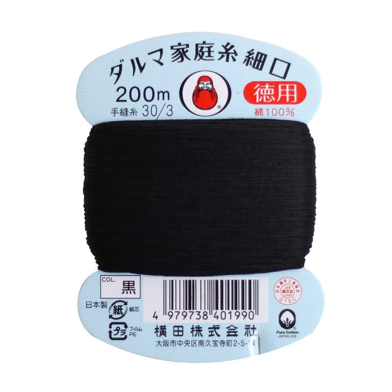 ダルマ 家庭糸 細口 徳用 手縫い糸 30番手 200m col.黒 01-0140