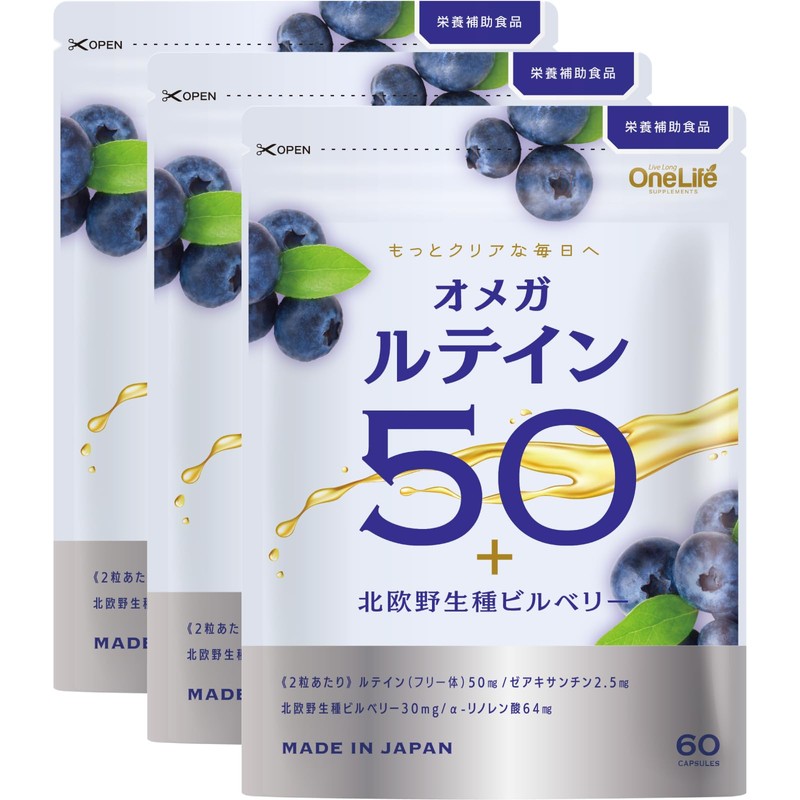 - ✅【成分量表示(1日2粒あたり)】フリー体 ルテイン 50mg、ゼアキサンチン 2.5mg、北欧野生種ビルベリー 30mg、ビタミンA495μg、ビタミンB1 1.1mg、ビタミンC 96mg、ビタミンE 8.8mg、α-リノレン酸 64mg