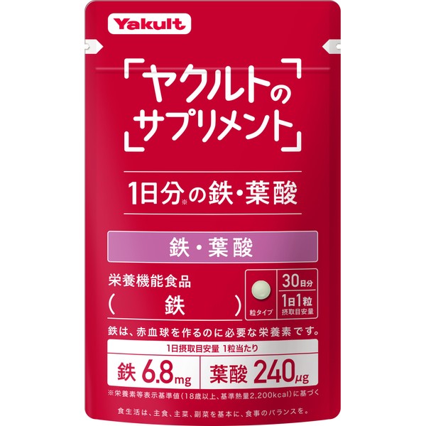【ヤクルトのサプリメント】鉄・葉酸(30粒)30日分/1粒で1日分の鉄・葉酸/ヤクルト