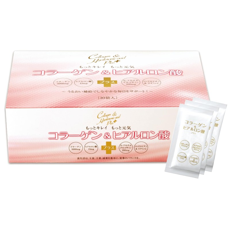 薬日堂 コラーゲン&ヒアルロン酸プラス 30袋 (約30日分) コラーゲンペプチド5,000mg N-アセチルグルコサミン200mg配合