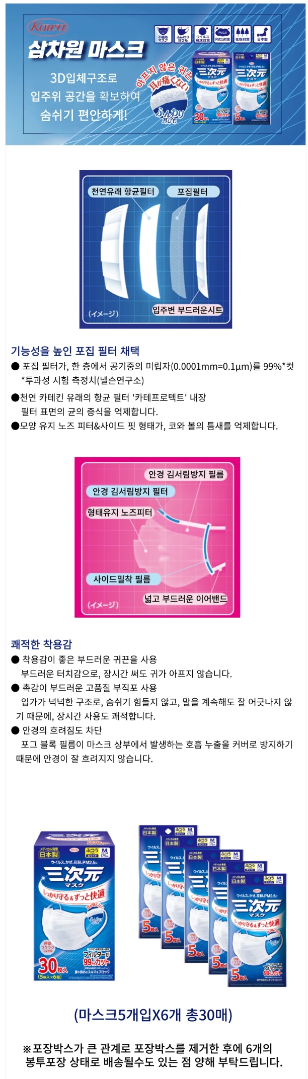 코와 삼차원 마스크 30매 興和 三次元マスク ふつうサイズ 30枚入 Kowa 3D Mask 30 Pieces