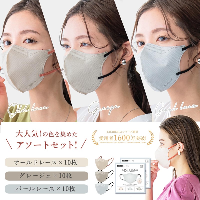 [CICIBELLA] マスク 30枚入り不織布 3dマスク バイカラー 立体マスク 小さめ 使い捨て カラーマスク 1箱 5D (30枚, アソートボックスA)