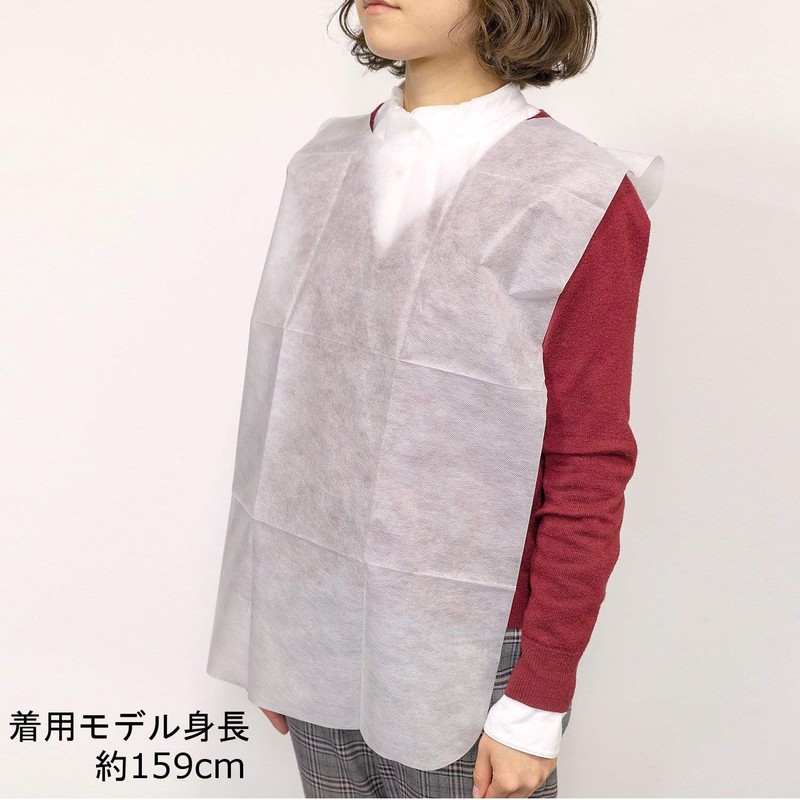 [ストリックスデザイン] 使い捨て お食事エプロン 30枚 ホワイト 白 43×75cm 男女兼用 襟元カバー付き 被るタイプ 3層構造 不織布 介護 子供 外食 焼肉 KN-947S