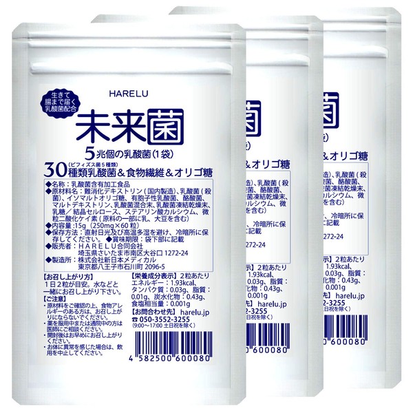 未来菌 乳酸菌 サプリ ビフィズス菌 30種類 5兆個 30日分 有胞子性乳酸菌 オリゴ糖 食物繊維 (約3ヶ月分(3袋))