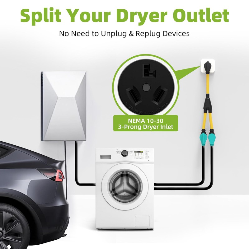 - 【Plug & Play Convenience】No electrician needed. Simply plug in older dryer outlet and start using. Powers two devices alternately from one outlet without rewiring. A time- and cost-saving solution for EV owners, RV travelers, and dryer users alike.