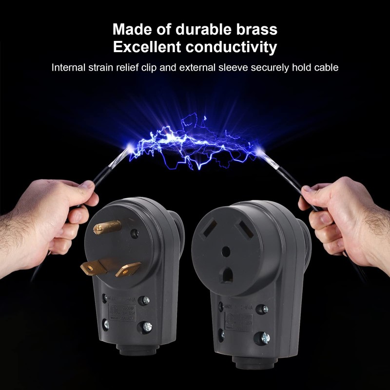 • 30A Female Receptacle and Male Plug: This set includes one female receptacle and one male plug, specially designed for RV
