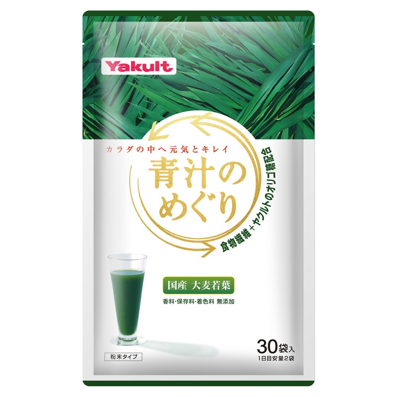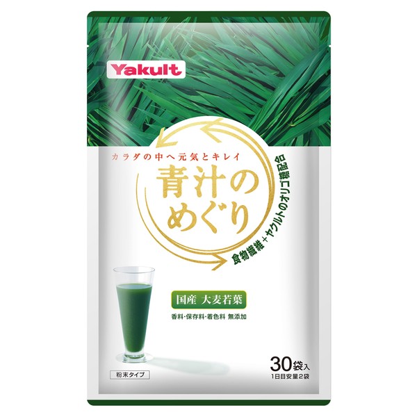 ヤクルトヘルスフーズ 青汁のめぐり30袋 (平袋)大分県産 大麦若葉 食物繊維 ヤクルトのガラクトオリゴ糖 ほんのり甘い