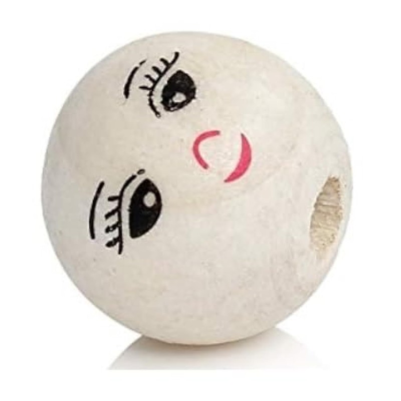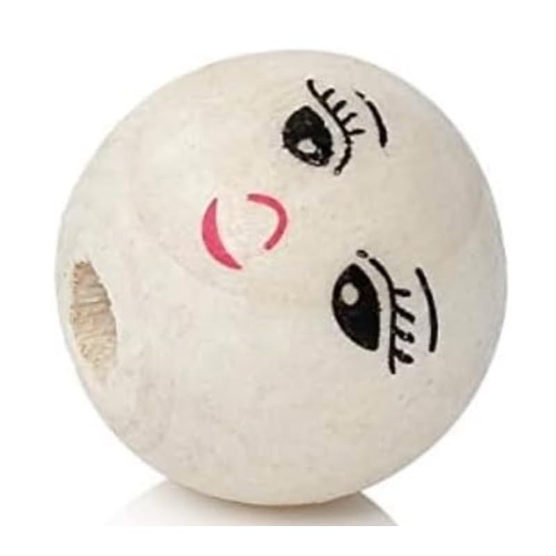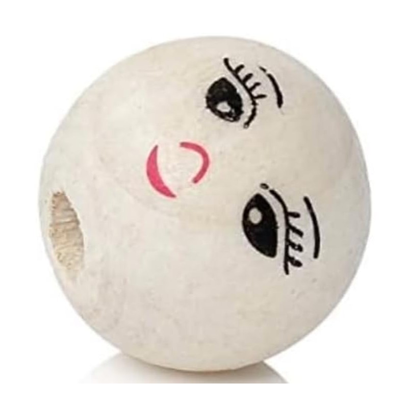 - Colour/dimensions: the wooden beads are round and have a diameter of 14 mm (1.4 cm). The perforation is 2.9 - 4.3 mm. The colour is natural, each bead also has a painted smiling face. As this is a natural product, small deviations may occur.