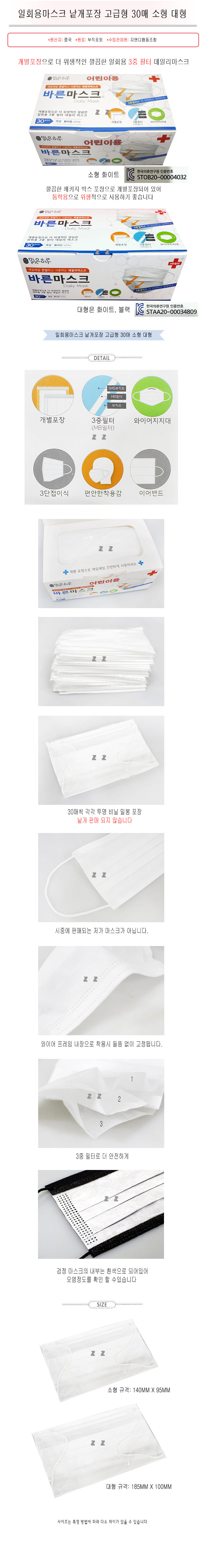 마스크 시원하고 두꺼운 일회용마스크 30매 소형 대형
