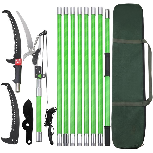 30 Feet Tree Pole Pruner Manual Branches Trimmer Tree Branch Garden Tools Loppers Hand Pole Saws Extendable Height Adustable System for Sawing and Shearing