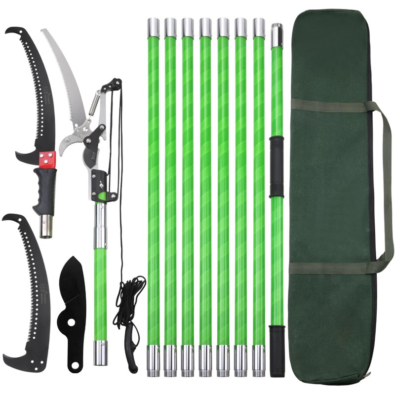 - 【Safe and Reliable】:You can easily prune high and hard to reach branches on even tall trees, and do it without the hazard of climbing a ladder, You also can trim at ground level without bending or kneeling. with a sturdy tree trimming system that can extend up to 30 feet.Pruning your own trees and shrubbery now will be easier and safer than ever before