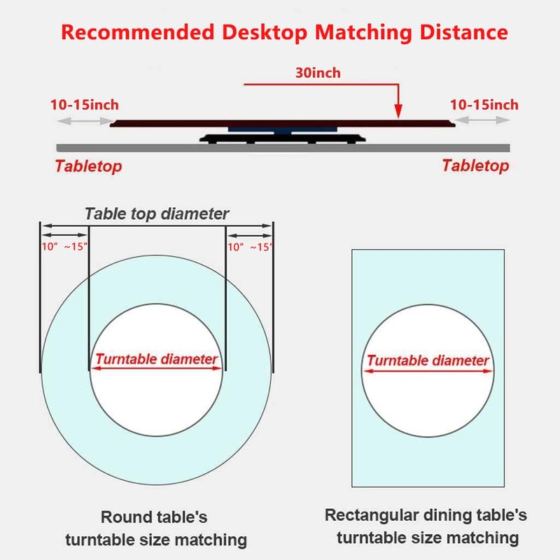 • VERSATILE CENTERPIECE FOR EVERY OCCASION - Our turntable boasts a generous 30-inch diameter surface, providing ample space for an array of dishes or decorative items. From fruits to large vases and even giant multi-tiered cakes, the possibilities are endless. This 30-inch turntable fits on tables ranging from 50 inches to 60 inches. Please measure your table size before ordering.