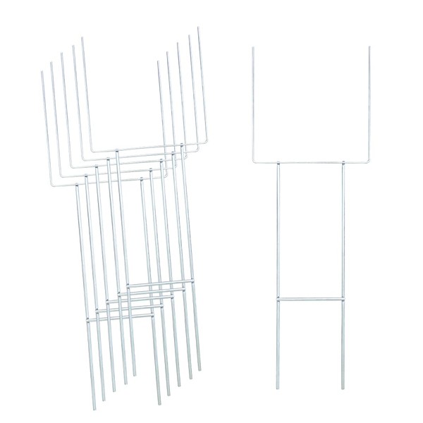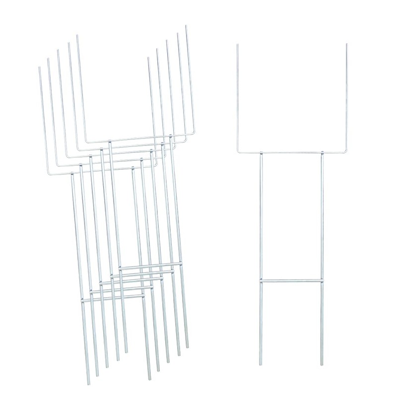 - Easy To Install H Frame Yard Sign Step Stakes: Installation is easily completed by sliding directly into fluting of corrugated plastic signs-no hardware required! Then either using both hands on either side of the top vertical wire to press the frame into the ground OR press your foot down on the heavy duty bottom vertical wire, pressing the frame into the ground.