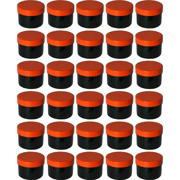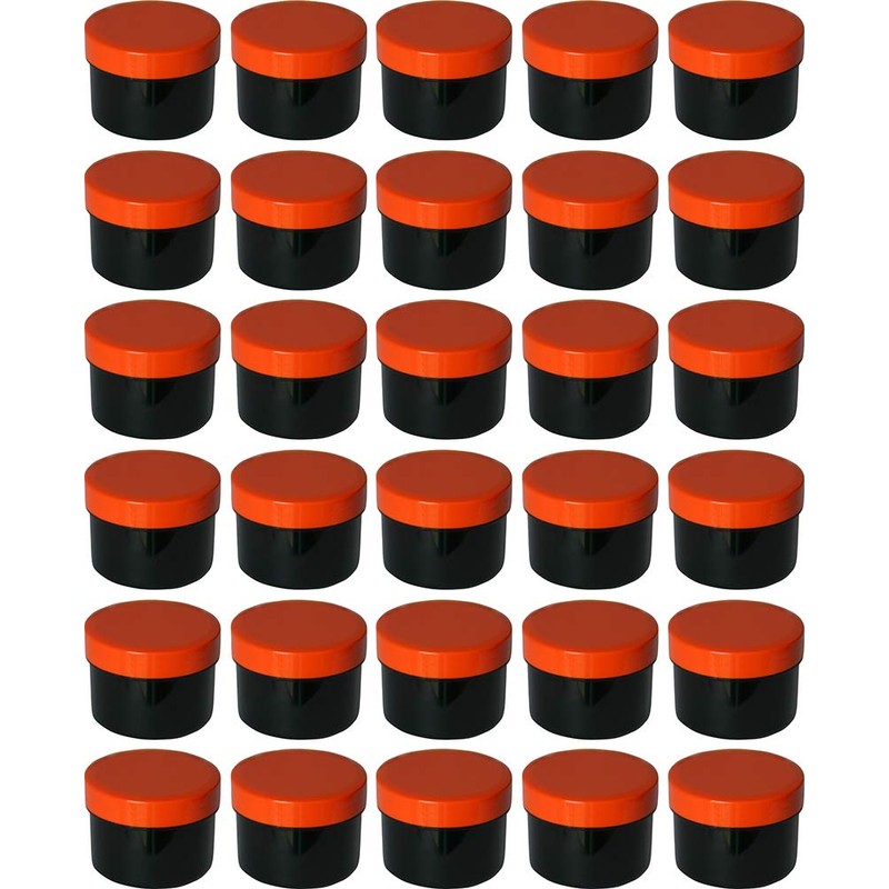 30 ointment containers, cream jars, flat black, 35 ml capacity with orange-coloured lids