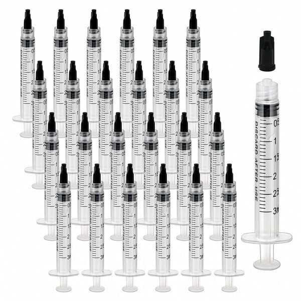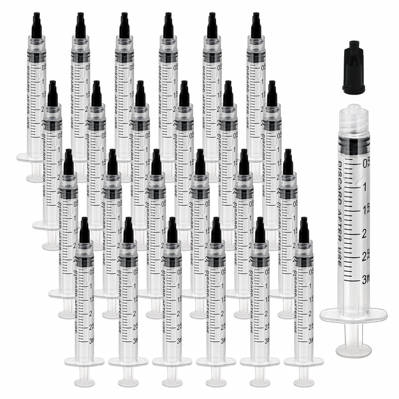 - ✿【Luer Lock Syringe】: You will receive 30 pack 3ml sterile syringes without needle, come with matched tip caps. Individually wrapped, make sure they’re clean, enough for use or replacement.