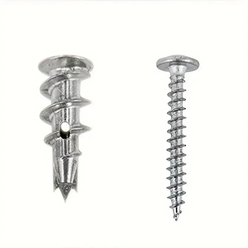 - Pack Quantity: Contains 30 Plasterboard Fixings and 30 Screws,The metal screws fit into all kinds of plasterboards as wall plugs or wall anchors.