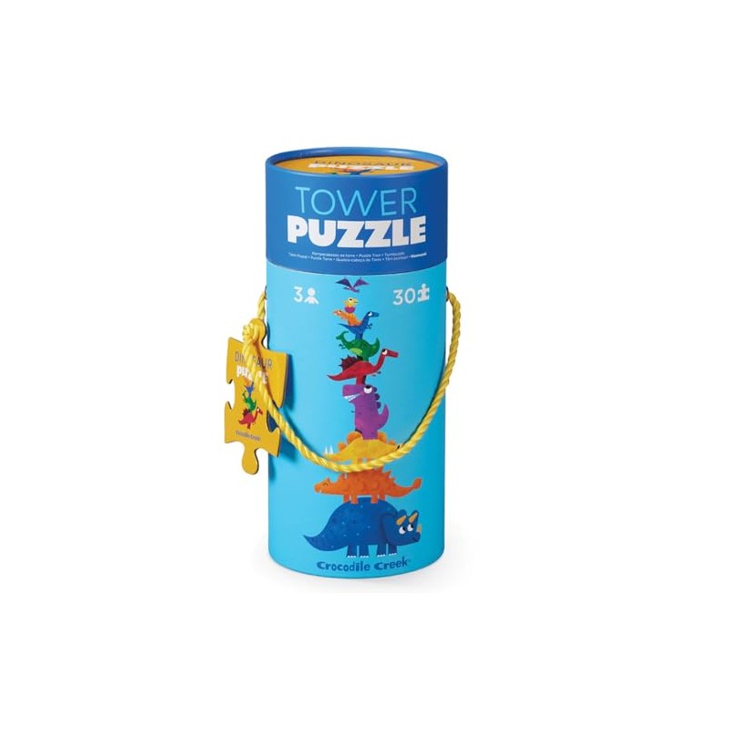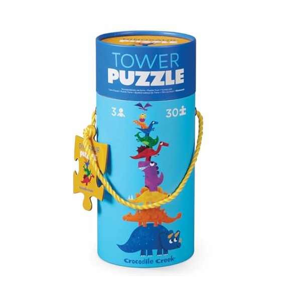 - 30-Piece Vertical Tower Puzzle in a Heavy-Duty Canister with handle, Designed for Kids Ages 3 Years and Up, Dinosaur