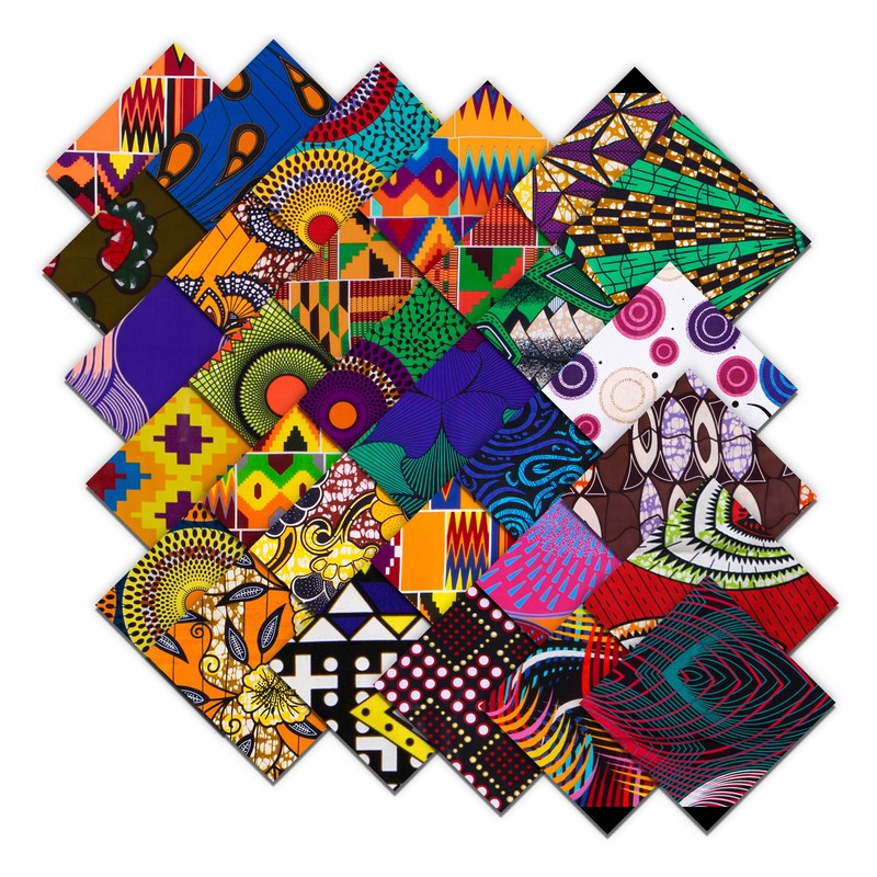 30 Pcs 25 x 25 cm/9.8 x 9.8 inches Cotton African Fabric Square No Repeat Pat...