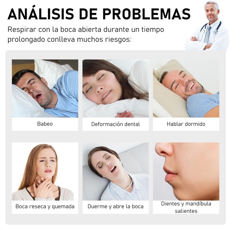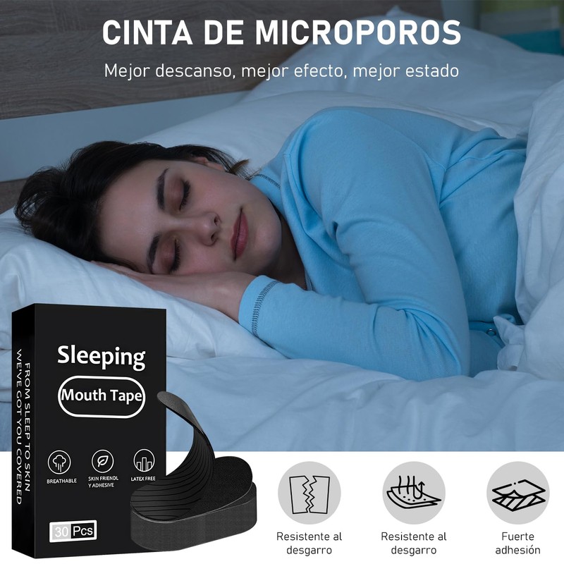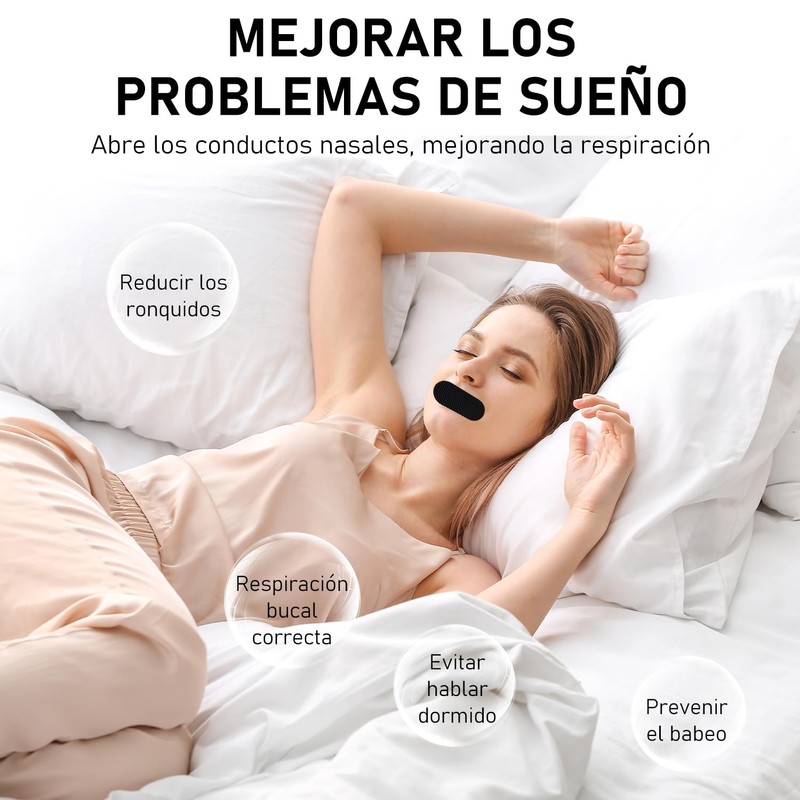 - Beneficios antirronquidos: Mantenga la boca cerrada durante la noche con cinta bucal y pegatinas bucales. Esto ayuda a reducir significativamente los ronquidos, promover un sueño reparador y lograr su objetivo de no roncar