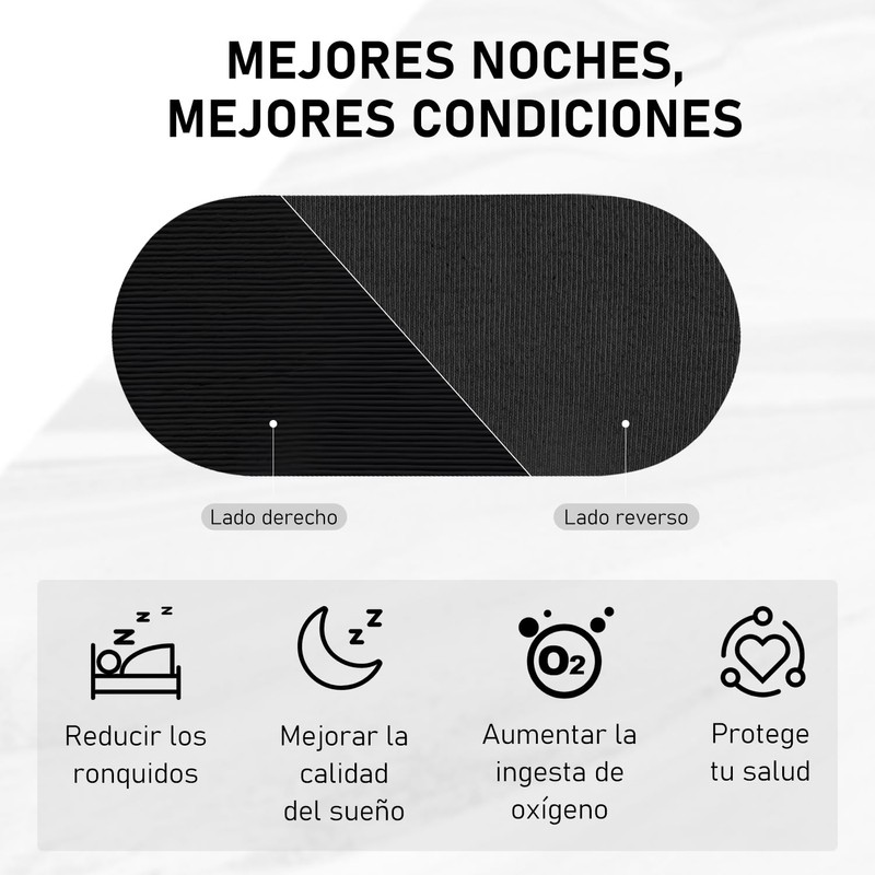 - Respiración mejorada: promueve la respiración nasal para ayudarle a conseguir un sueño más profundo y reparador. Los cinturones para dormir ayudan a minimizar los ronquidos y crean un ambiente de sueño tranquilo y pacífico para usted y su pareja