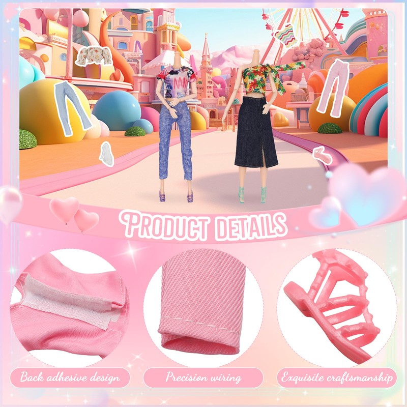 - đ§ăPremium Quality MaterialsăOur doll fashion dress, pants, and tops are made of environmentally friendly fabrics, which are soft and comfortable, have good wearing effect. High heels are made of high-quality plastics, which are safe and non-toxic, and do not contain harmful substances to the body, allowing children to play with peace of mind.