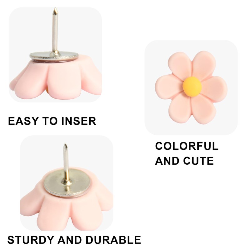 <p><p>Product Description </p><p>Bring a breath of fresh air to your office or home with these delightfully designed flower pin board pins. More than just a tool for pinning up important notes or reminders, these cute pink and white flower thumb tacks are a fun and creative way to add a touch of personality and flair to any space. Whether you're decorating a corkboard at work, marking key points on a map, or even pinning up pictures in your living room, these drawing pins for notice board are as decorative as they are functional. </p><p><br></p><p>Made from high-quality resin for the flower heads and rust-resistant metal for the sharp needles, these wall pins are built to last. Their stronger and thicker design makes white drawing pins a reliable choice for both everyday office use and creative projects. With 1 cm long steel needles, pink drawing pins insert easily into soft surfaces like wood, cork, or cardboard, keeping your notes, photos, and posters securely in place. </p><p><br></p><p>The unique flower design makes these pins for cork board the perfect fit for playful spaces, crafty individuals, and those who enjoy adding a personal touch to their environment. Imagine the smiles they’ll bring to a classroom, office, or craft room—not only will map pins serve their purpose, but they will also make organizing your space feel like an enjoyable task. These white pins also make a perfect gift for anyone who loves adding whimsical details to their home or workspace, creating a delightful balance of function and fun. </p><p><br></p><p>With 30 pins in every set, each with a 2 cm (0.9 inch) flower head, you have more than enough to handle your daily needs while keeping your space organized and charming. And thanks to the reusable storage box, it’s easy to keep your thumbtacks neatly stored and accessible whenever you need them. </p><p><br></p><p>Whether you’re a creative professional, a DIY enthusiast, or simply someone who enjoys a bit of flair in everyday items, these flower-shaped flower sticks will add that extra sparkle to your decor and organization. </p><p><br></p><p><strong>Product Specifications: </strong></p><ul><li><strong>Flower Head Diameter: </strong>2 cm (0.9 inches) <strong> </strong></li><li><strong>Pin Length: </strong>1 cm (0.4 inches) </li><li><strong>Total Pin Length:</strong> 1.6 cm (0.63 inches) </li><li><strong>Material: </strong>Resin flower head, stainless steel pin </li><li><strong>Package Includes: </strong>30 push pins and a reusable storage case </li><li><strong>Weight per Pin: </strong>1.3g </li></ul><p><br></p><p>Don’t settle for ordinary—add a burst of color and creativity to your space with these flower flower pins today! Click "Add to Cart" and transform your corkboards, bulletin boards, and creative projects into something extraordinary! </p></p>
