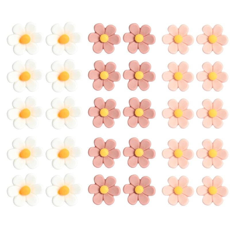 30 pcs Drawing Pins Resin Flower Pins Push Pins for Bulletin Board Nail Cork Board Cardboard Hanging Poster Wall Decoration, Pink White