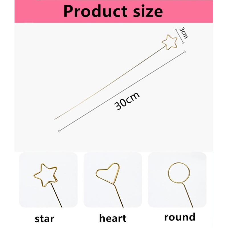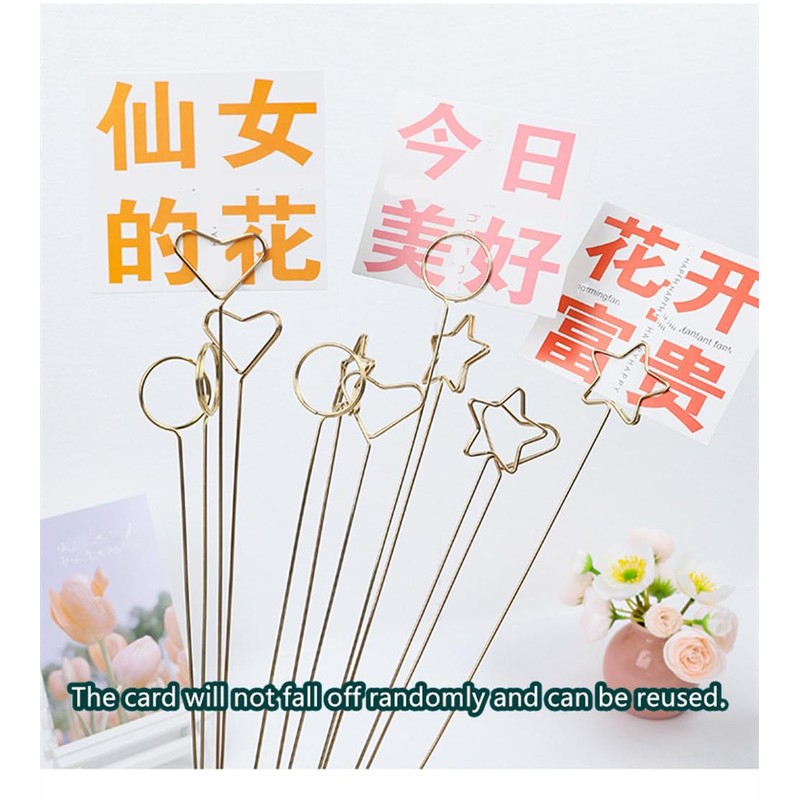 - Package Include: You will recevie 30 pcs golden metal floral place card holders with different sharp:round,star,heart, 10pcs each style. They are value-for-money and enough to meet your , party decoration and friends gathering needs. and each craft wire clip pick measures 12inch/30cm.