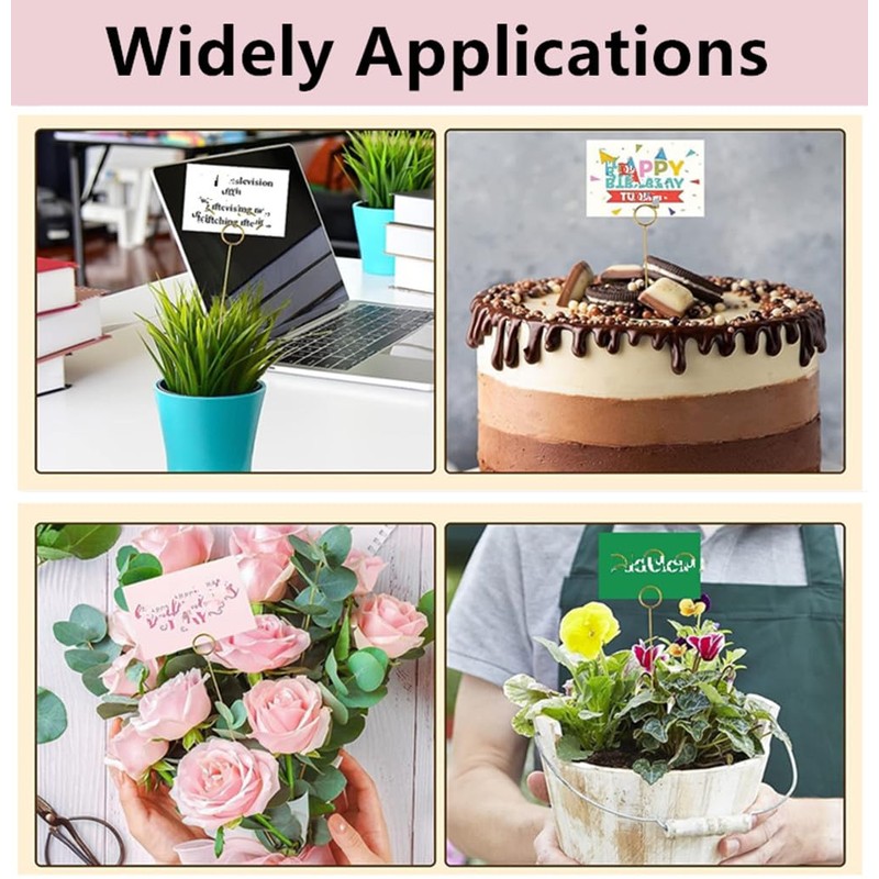 - Easy to use : Insert the card or notes into the head of the floral picks, and then fix the metal holder picks where needed. the floral picks card holders are long enough to fit into a bouquet or vase, which can to fix memos, pictures, notes, gift cards.
