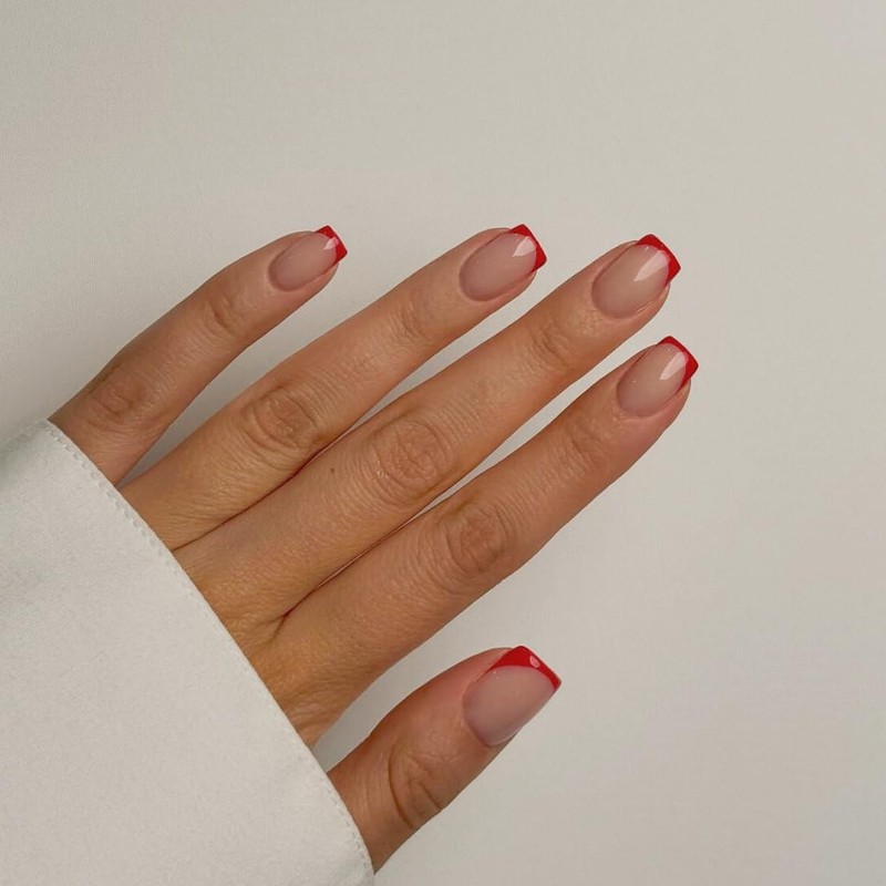 - How Natural They Are:These French press on nails square nails designs look very natural,with a perfect that fits your nail bed,and a nude pink base color that gives the appearance of real nails.French tip press on nails red can create your own fingertip art and make your nails your fashion statement!With short press on nails French tip,you can achieve a natural, elegant look without the salon visit