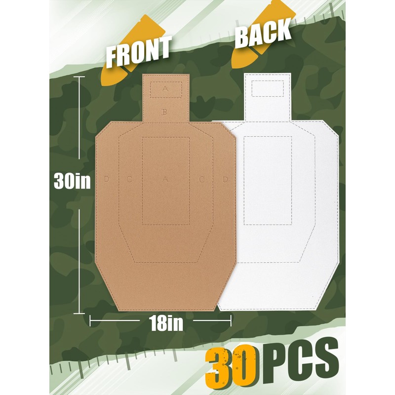- Package Contents: You will receive 30 pieces of tactical cardboard targets, which measure 30 inches tall and 18 inches wide. You can use them to enhance your shooting skills, and they can build your confidence in equipment and shooting skills handling.