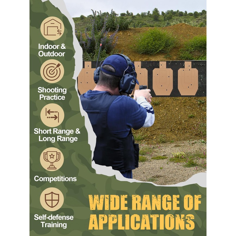 - Widely Used: The shooting targets are not only suitable for short or long-distance shooting, but also for shooting practices, competitions, self-defense training, military, law enforcement, or entertainment shooting. They will allow you to train continuously for several hours.