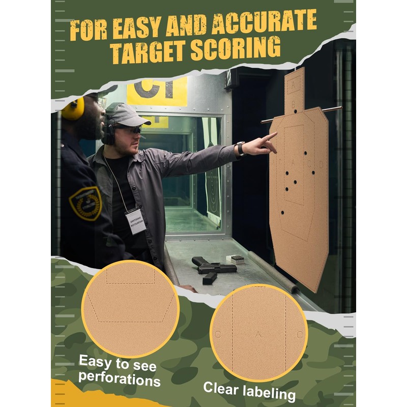 - Improve Your Aim: The front of the shooting target silhouette cardboard is tan, and the back is white to distinguish between shooting and not shooting. They include clear perforations and labelings for easy and accurate target scoring.
