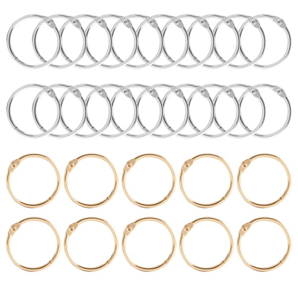30 Piece Metal Loose Leaf Ring, Loose Leaf Staple Book Ring, Loose Leaf Ring Loose Leaf Folder Key Ring for Binding documents and scrapbooks (Silver/Gold)