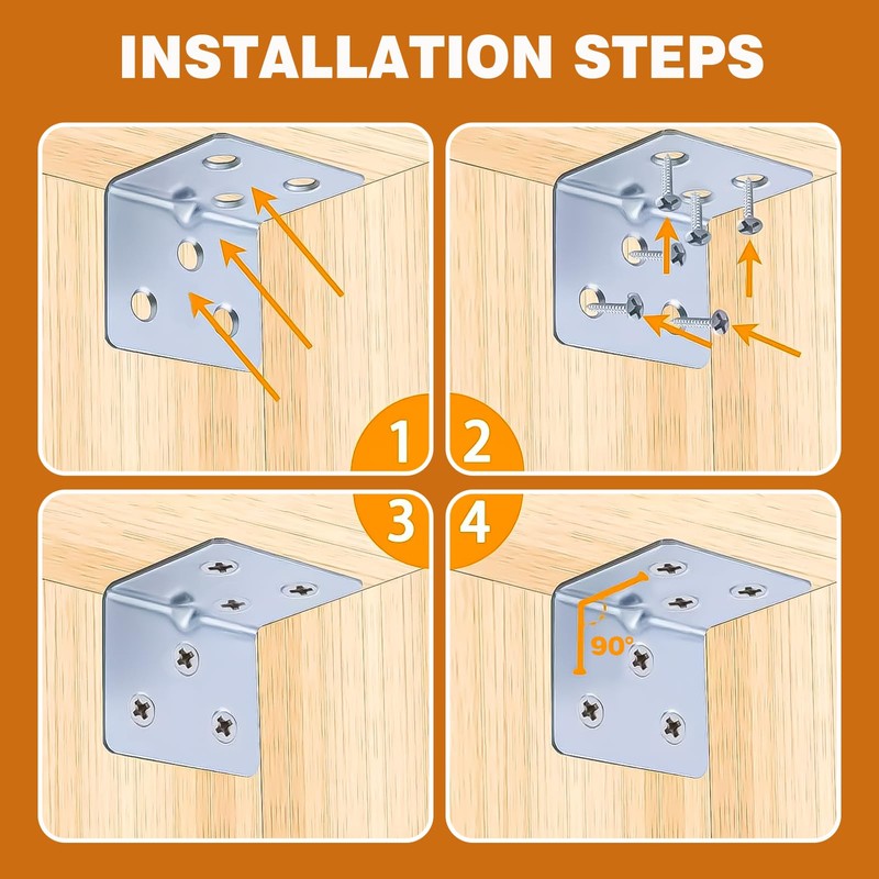 - 【Easy to install】It is easy to install the L bracket in the wood material. All you need to do is drill holes and tighten the screws with a screwdriver. The mounting holes with countersunk head design ensure that the screws do not protrude and your furniture look beautiful.