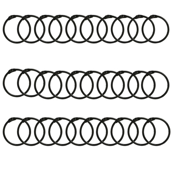 30 pieces binder rings, 1 inch, nickel-plated steel book rings, loose leaf binder rings, key rings, metal rings for index cards (black)