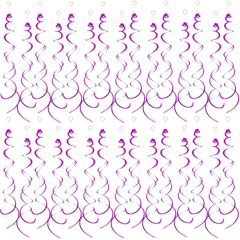 30 Pieces Hanging Swirl Party Decorations Foil Decorations Ceiling Swirl Spiral Hanging Plastic Streamer for Ceiling Birthday Graduation Wedding Celebration Baby Shower Party Supply (Deep Purple)